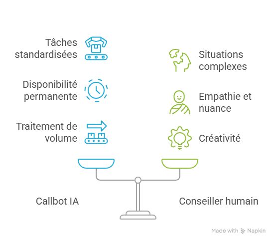 Qu’est-ce qu’un callbot et pourquoi l’adopter ? « Allô, bonjour ! Ici VoicePartner, en quoi puis-je vous aider aujourd’hui ? » Si cette phrase vous semble banale, imaginez maintenant qu’elle soit prononcée… par une intelligence artificielle. Pas de script rigide, mais une voix naturelle, capable de comprendre vos besoins, de répondre à vos questions, et même de détecter votre humeur. Bienvenue dans le monde des callbots, ces assistants vocaux nouvelle génération qui transforment radicalement l’expérience client. Qu’est-ce qu’un callbot ? Définition et contexte Un callbot est comme un collaborateur infatigable, toujours disponible, capable de répondre au téléphone avec une voix naturelle, de comprendre les demandes de vos clients, et même d’anticiper leurs besoins. Contrairement à un serveur vocal interactif, le callbot est un assistant vocal intelligent, alimenté par l’intelligence artificielle. Son super pouvoir ? Comprendre le langage naturel et engager une conversation fluide, comme avec un humain. Callbot = Robot vocal + IA. SVI = Menu vocal classique (« Tapez 1 pour X »). Pourquoi parle-t-on de « callbot IA » ? Le terme « callbot IA » souligne le rôle central de l’intelligence artificielle dans son fonctionnement. Grâce à des technologies comme le NLP (Natural Language Processing) et le machine learning, le chatbot vocal ne se contente pas de répéter des scripts : il apprend, s’adapte, et améliore ses réponses au fil des interactions. Par exemple : Un client appelle pour annuler une commande. Le call bot : Reconnaît la demande (« Je veux annuler ma commande n°12345 »). Vérifie les informations dans le système (statut de la commande, politique de remboursement). Propose une solution (« Votre commande est éligible à un remboursement sous 48h. Je m’en occupe tout de suite ! »). Où rencontre-t-on des callbots ? Les callbots sont déjà présents dans de nombreux secteurs d’activité, même si vous ne les remarquez pas toujours ! Voici quelques cas d’usage courants : E-commerce : Suivi de livraison, gestion des retours. Santé : Prise de rendez-vous médicaux, rappels de vaccination. Banque/Assurance : Vérification de solde, déclaration de sinistre. Service client : Réponses aux FAQ, orientation vers le bon service. Comment fonctionne un callbot IA ? Un callbot ne se contente pas d’imiter une voix humaine : il écoute, comprend et agit en temps réel, grâce à une combinaison de technologies IA. Étape 1 : La reconnaissance vocale, ou comment le callbot écoute Dès qu’un client prend la parole, le callbot active sa première compétence : la transcription instantanée de la voix en texte, grâce à la technologie STT (Speech-to-Text). Contrairement aux anciens systèmes de reconnaissance vocale, souvent limités par des accents ou des bruits parasites, les callbots modernes s’appuient sur des modèles d’IA entraînés sur des millions d’heures de conversation. Résultat ? Même si votre client parle rapidement, avec un accent régional ou dans un environnement bruyant, le call bot capte et transcrit ses mots avec précision. Un exemple : un client appelle pour demander « Bonjour, je voudrais savoir où en est ma commande n°56789 ». En une fraction de seconde, le système convertit cette phrase en texte exploitable, prêt à être analysé. Étape 2 : Le traitement du langage naturel, ou comment le callbot comprend Une fois la phrase transcrite, l’intelligence artificielle entre en jeu pour décrypter le sens de la demande. C’est ici que le NLP (Natural Language Processing) intervient. Cette technologie permet au callbot de ne pas se contenter de repérer des mots-clés, mais de comprendre l’intention derrière la phrase, ainsi que les éléments clés à retenir. Reprenons notre exemple : « Ma livraison a du retard, c’est normal ? ». Le callbot ne se limite pas à identifier les mots « livraison » et « retard ». Grâce au NLP, il reconnaît que le client exprime une préoccupation liée à un délai, et qu’il attend une réponse rassurante ou une explication. Les modèles les plus avancés, comme BERT ou Transformers, sont capables de saisir les nuances du langage, y compris l’ironie ou l’urgence dans le ton. Certains callbots poussent même l’analyse plus loin en détectant l’émotion dans la voix (colère, stress, satisfaction). Étape 3 : La génération de réponse, ou comment le callbot répond Une fois l’intention identifiée, le call bot prépare sa réponse. Mais il ne va pas lire un texte préétabli : l’IA génère une réponse adaptée en fonction du contexte, puis la convertit en voix grâce à la technologie TTS (Text-to-Speech). Certaines voix synthétiques actuelles sont si réalistes qu’il est parfois difficile de les distinguer d’un humain. Un callbot ne se contente pas de parler : il agit. Concrètement, il se connecte à vos outils internes (CRM, base de données, logiciels métiers) pour exécuter des actions en temps réel. Dans notre exemple, il pourrait vérifier le statut de la commande n°56789, constater qu’elle est en cours de livraison, et répondre : « Votre commande est prévue pour demain avant 14h. Souhaitez-vous recevoir un SMS de confirmation ? ». Si le client accepte, le callbot envoie automatiquement le message, sans intervention humaine. Cette intégration avec vos systèmes existants est ce qui rend le callbot vraiment utile. Que ce soit pour annuler une réservation, mettre à jour un dossier client ou déclencher une alerte, il devient un maillon actif de votre chaîne de service. Pourquoi adopter un callbot ? Les avantages concrets Un service client disponible 24h/24 L’un des atouts les plus évidents du call bot est sa disponibilité permanente. Contrairement à une équipe humaine, soumise aux horaires de bureau, aux congés ou aux pics d’activité, le bot est toujours opérationnel, même la nuit, le week-end ou pe